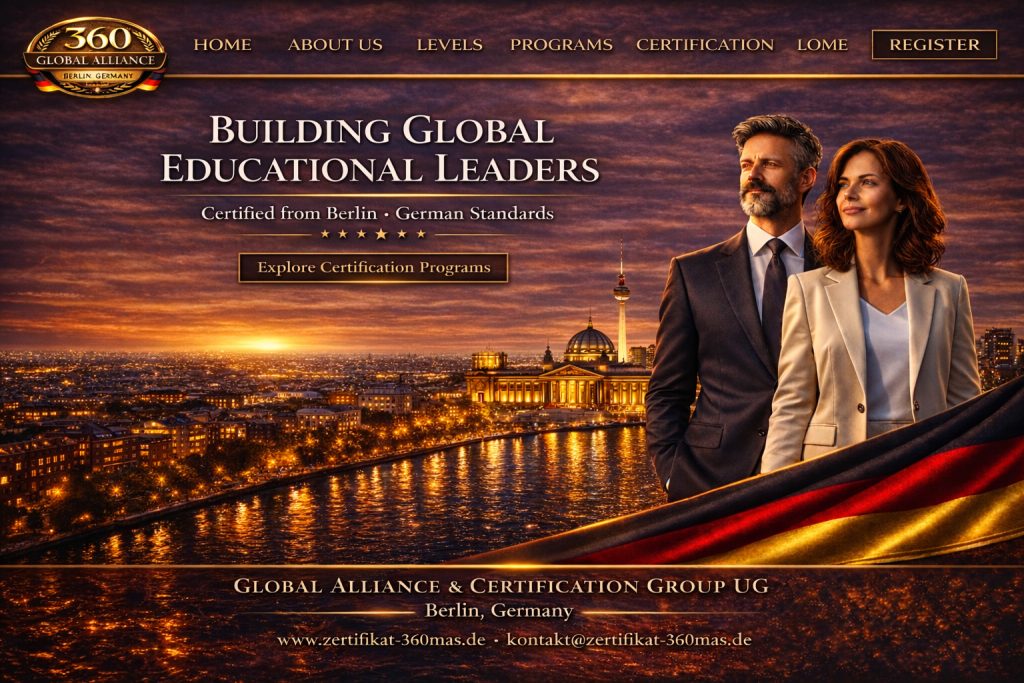 360 Global Alliance & Certification Group UG es una entidad internacional con sede en Berlín dedicada a la certificación, validación y reconocimiento de competencias profesionales, académicas e institucionales.